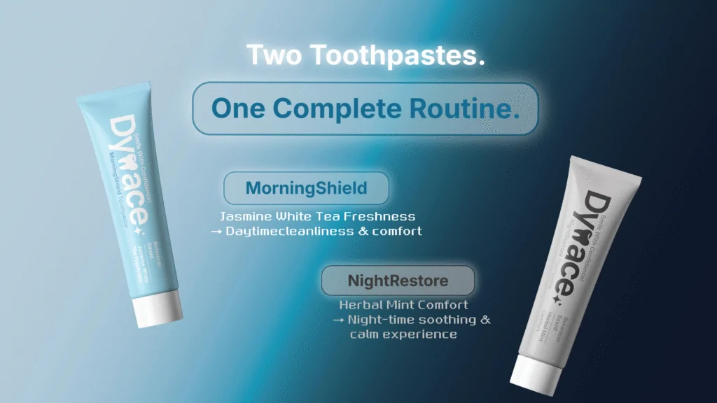 Introducing Dynace Duo ToothPaste – the gentle, botanical oral care system designed for modern lifestyles. This innovative dual-routine toothpaste addresses the distinct needs of your mouth throughout the day and night.